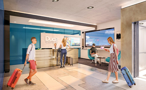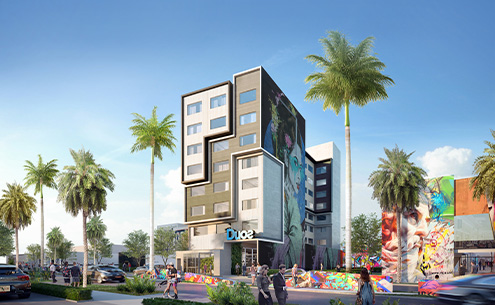 Duos es una propuesta de usos mixtos ubicado en Wynwood – Miami, Distrito de las Artes de esta ciudad. El proyecto contempla el desarrollo de un edificio de aproximadamente 3000 m² distribuidos en un local comercial en la Planta Baja y 51 habitaciones en los 8 niveles superiores.