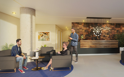 Implantado en un lote único, por los edificios que lo rodean, garantiza excelentes vistas de las plantas residenciales, potenciadas por la decisión de ubicar las plantas de estacionamientos vehiculares en la PB, 1er y 2do piso; y la comodidad de su ubicación única que convive con la tranquilidad de su entorno inmediato y la cercanía a la nueva movida comercial.
