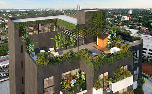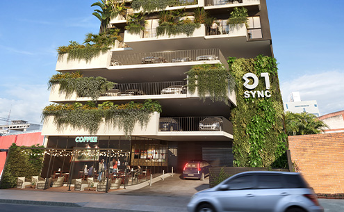 Sumado a sus condiciones propias recién mencionadas, 01 Sync presta especial atención al paradigma actual: fachadas y azoteas verdes dan una imagen diferencial, concientizan y al mismo tiempo sirven para dar frescura al edificio.