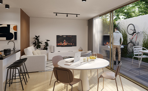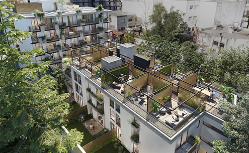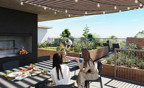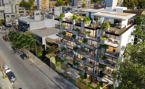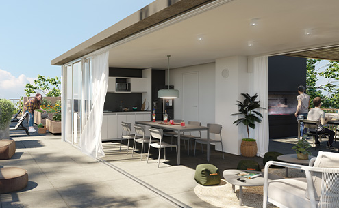 A su vez, en el último piso del bloque alto se encuentran los amenities para el uso y disfrute de todos los propietarios, parrilleros semicubiertos, co-living integrado con terraza exterior, una huerta orgánica colaborativa, Wet Spa con solarium, laundry con tender, área de servicios y tecnología bluetooth para conexiones de audio y video.